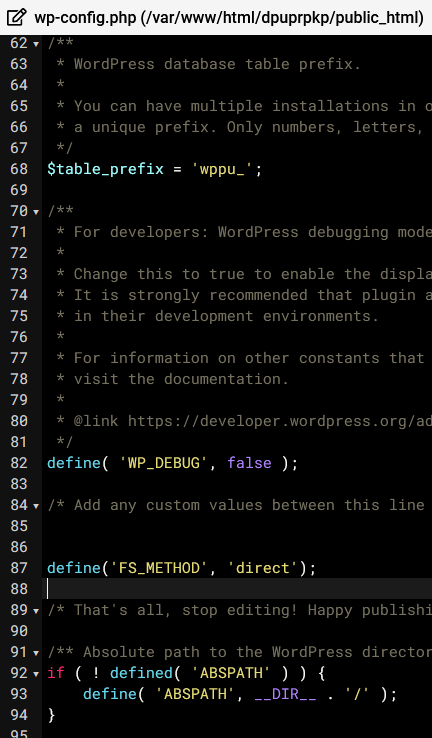 2. Tambahkan baris berikut sebelum baris /* That's all, stop editing! */: